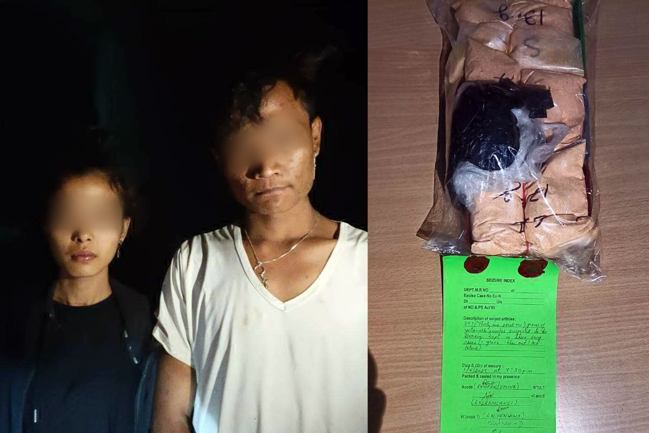 Excise & Narcotics Department hian May 1, 2023 (Thawhtanni) zan khan Zote, Champhai District-ah Heroin gram 39.100 (Hawng 2) leh a neitu nia puh mi pahnih - Ramfangzauva (22) s/o Lalrinmawia, Champhai Venglai leh Lalramsangi (18) d/o Laltlanngheta (L), Champhai Electric Veng nia inchhalte an man a; hemi zan vek hian Champhai Vaihmun-ah Heroin gram 125 (Hawng 10) leh a neitu nia puh - Lianzamanga s/o Pausawmkhupa, Champhai Dinthar Veng-a khawsa nia inchhalte an man bawk.