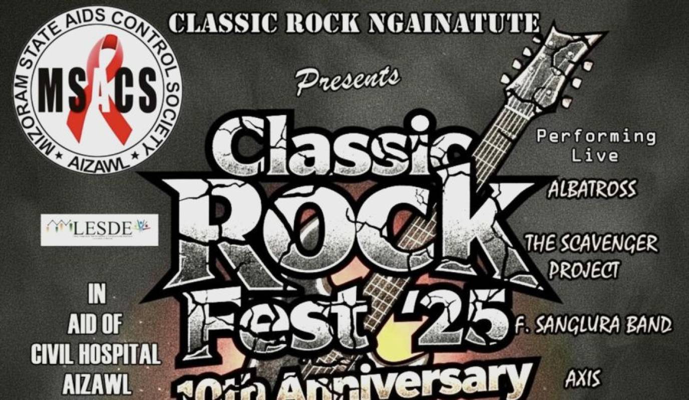 ZALEN December 12, 2025: Classic Rock Fest ‘25 chu 13.12.2025 (Inrinni) zan dar 7:00 ah Vanapa Hall-ah neih a ni dawn a, rock band tha tak tak 15 zet an zai dawn.