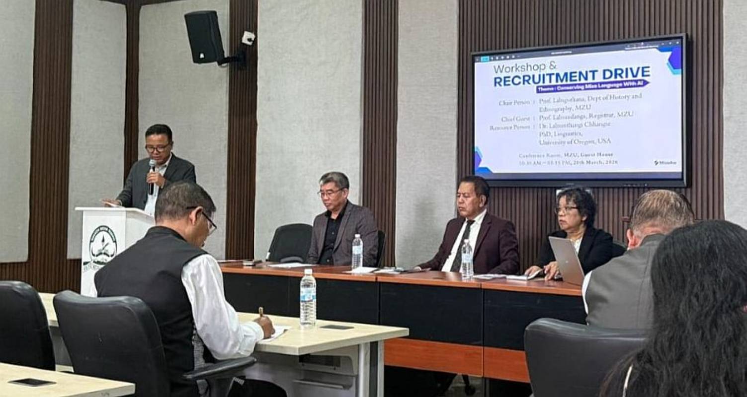 ZALEN March 20,2026 : Mizo Aw pawl te hmalakna in “AI hmanga Mizo tawng humhalh” tih thupui zirhona leh hemi atana hna thawk tur zawnna chu vawiin khan Mizoram University Guest House Conference Room-ah buatsaih a ni.