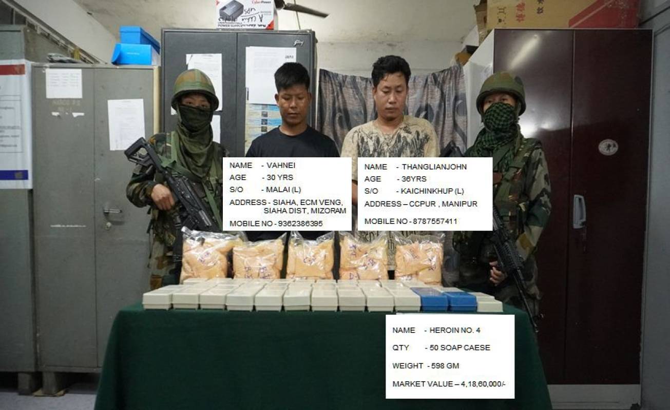 May 3, 2024; Special Narcotics PS (CID Crime) leh Assam Rifles tangkawp ten Rs. Vbc. 4.18 hu heroin leh a neitu nia puh te an man.
